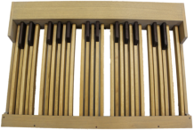 De klavierblokken worden standaard geleverd met 14 duimpistons in de onderste setzerlat (S, 1, 2, 3, 4, 5 < > 6, 7, 8, 9, 0, C).
